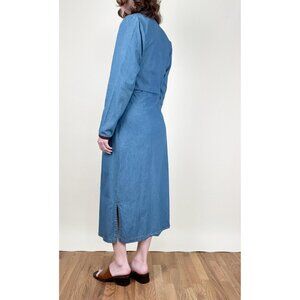 Vintage Denim Jean Midi Maxi Dress Pleated Long Duster Jacket Coat Cottagecore