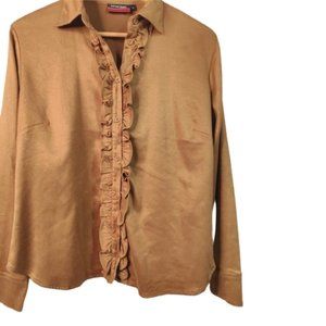 Vintage Denver Hayes Ruffle Faux Suede Button Top