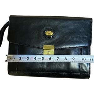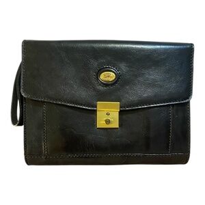 Vintage Derek Alexander black Leather w brass look locking clutch bag. Unisex