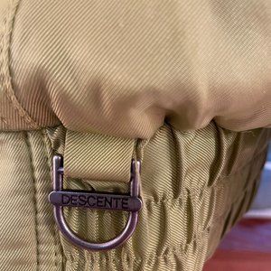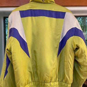 Vintage Descente ski jacket in excellent used condition. Comes with many technical looking patches and pockets, a metal loop to clip your gloves or goggles to, and (but of course) shoulder pads!