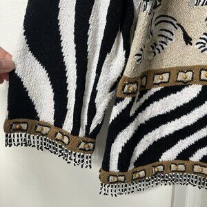 Vintage Design options 3D Zebra Cardigan Womens L Animal Print Beaded Fringe
