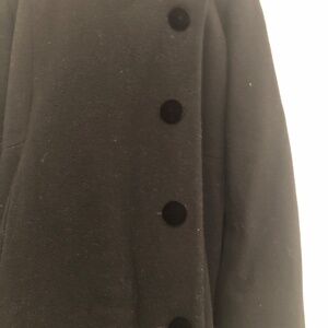 Rare. Designer Bernard Holtzman for Harve Bernard wool coat made in Ukraine. It has velvet buttons. The one at the top is missing should you need to button high. I have added a broach. Size 14. Or oversize. PTP 24”.