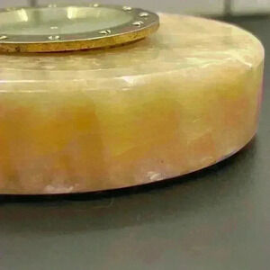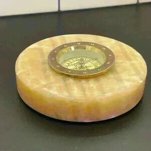 Vintage Desk Compass Alabaster Marble Base Paperweight 3½" D ⅞" H