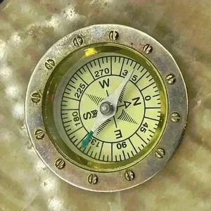 Vintage Desk Paperweight Directional COMPASS Mounted in Marble WNN Taiwan