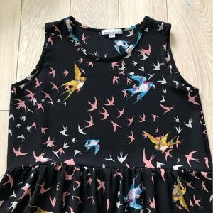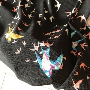 Vintage Desserts & Skirts Bird Print Chiffon Dress in Black Size S