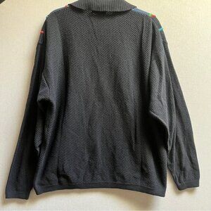 Vintage Di Bazzato 90s Black Knit Sweater Geometric Multicolor Diamond Sz L