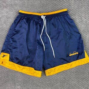 Vintage Diadora Shorts Men's Medium Soccer Shiny Satin Nylon Athletic Blue 5"