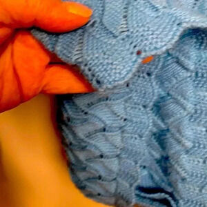 Beautiful vintage piece with a unique weave in the knit. It has gentle scallops at the bottom of the sweater and sleeves.