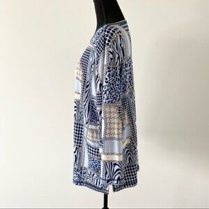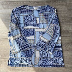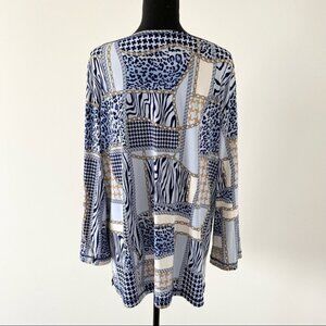 Vintage Diamond Tea Boat Neck Bell Sleeve Animal Print Blouse