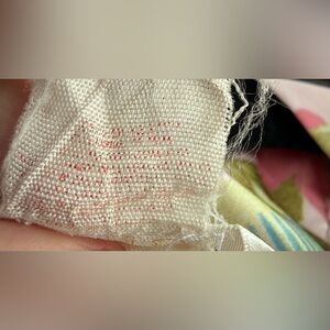 Done in a pretty pink floral, this vintage Diamond Tea robe has a wrap tie closure and a matching belt.