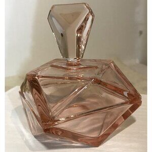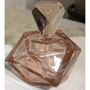 This elegant vintage perfume bottle features a unique diamond-shaped design, adding a touch of sophistication to any dressing table. Its pink glass construction and matching stopper make it a stylish choice for holding perfumes or essential oils. A charming addition for collectors or as a decorative piece.