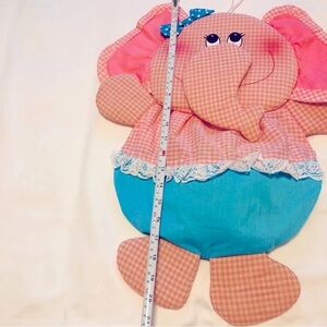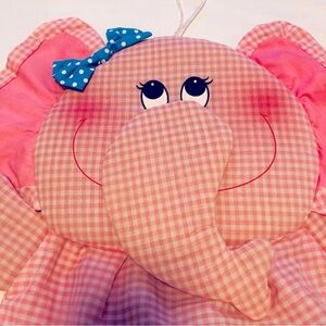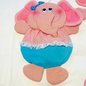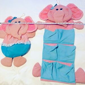 Vintage 1980's Russ Berrie & Co Nelly pink gingham elephant cloth nursery items. Includes: diaper holder and organizer. Both items hang. They are pink, and blue. Come as shown in my photos.
