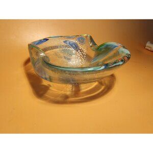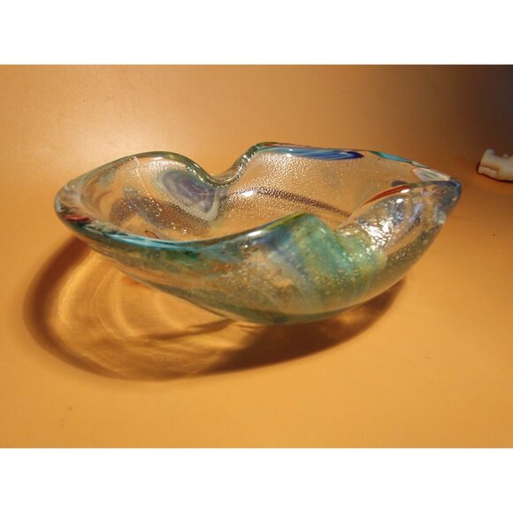 Vintage Dino Martens Murano Hand Blown Art Glass Bowl with silver aventurine