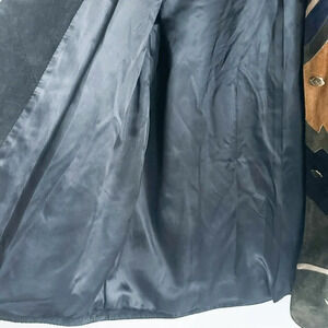 This vintage Dino'z jacket is a unique piece that will make a statement in any wardrobe. The suede leaf print patchwork design is eye-catching and the multicolor palette adds a pop of color to any outfit.