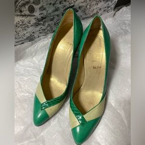 Vintage Dior Green and Cream Leather Heels - Size 8/8.5 approx