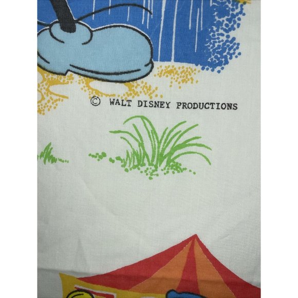Vintage Disney Carnival TWIN SHEET SET Mickey, Donald, Goofy, Minnie, Huey, Dewey, and Louie at the Fair Circus. Single stitch manufactured by Pacific