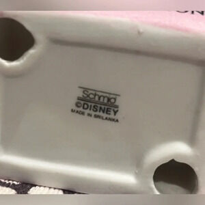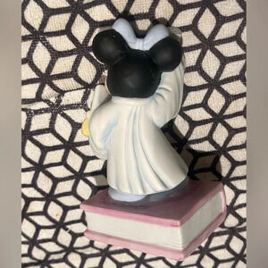 This is a vintage Disney ceramic figurine made by Schmid. The figurine is of Minnie Mouse.