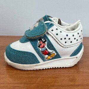 Vintage Disney sneakers. Featuring Mickey Mouse. Teal blue & white. Made in USA. Velcro closure. Absolutely adorable!