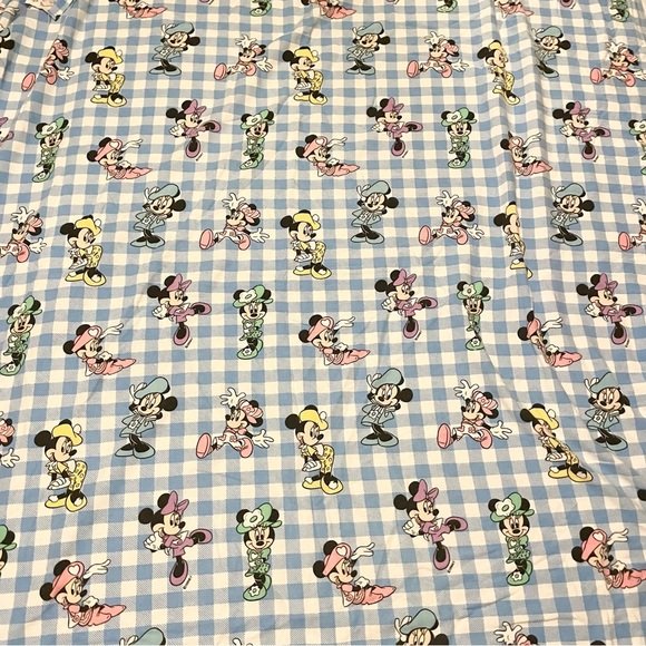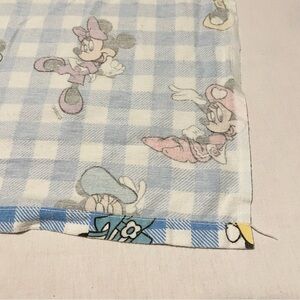 Vintage Disney Minnie Mouse Twin Flat Bed Sheet Blue White Gingham Check