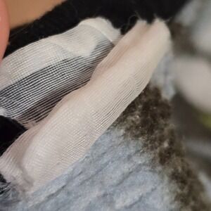 There is a area with something on it that didn't come out in the wash. Tag is faded. Measures 57.5 x 80 inches.