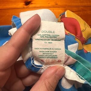 Delightful Disney bedding with Winnie the Pooh and Piglet. Features vibrant colors and cheerful design. Ideal for children's rooms. Nice and vibrant 50/50 cotton and polyester. Made in Canada.