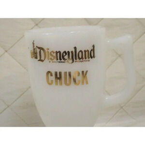 Vintage Disneyland Milk Glass Mug Footed Cup Chuck Gold Writing White