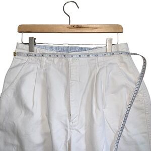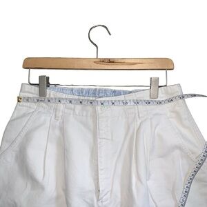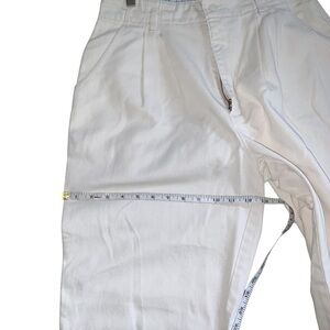 Cream Ballon leg trousers 100% cotton Button and zippered front with elastic in the back Belt loops Measurements in photos