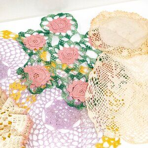 Vintage Doilies Lot No.1 / Assorted Colours + Patterns / 6 pcs / Victorian Craft