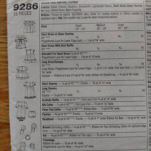 Vintage Doll Clothes Sewing Pattern Dress 12" to 22" Dolls Simplicity 9286 UNCUT