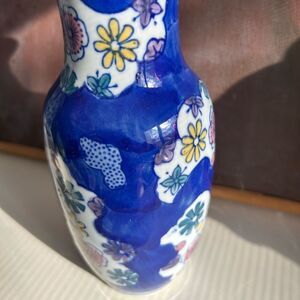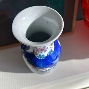 Vintage Dollarama Tall Shaped Flower Vase Blue / white