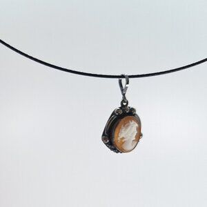 Black steel wire choker (coated black steel wire choker necklace:45.6cm(18") long, wire thickness: 1mm). The choker is brand new, and I did not purchase the choker together with the cameo pendant in Italy.