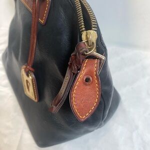 Dooney Bourke Black and Florentine Vachetta Leather Zip Domed Stachel Handbag