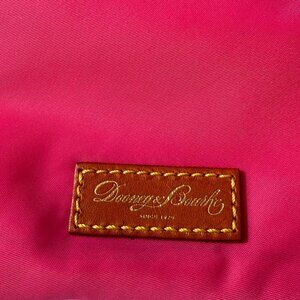 Vintage Dooney & Bourke North South Triple Zip Crossbody Bag - crafted from durable pink nylon with leather trim, this classic Dooney design is both practical and stylish.