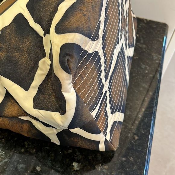 Vintage Dooney & Bourke nylon giraffe print shoulder bag. Tan leather st…