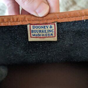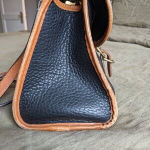 This vintage authentic Dooney and Bourke bag was purchased by my mother in the early 90s. Black and Tan color combination with brass buckle closure and feet. The edges show slight wear (see photos) as well as the buckle closure, but it's extremely clean and in great vintage condition! Such a classic bag! The detachable matching crossbody strap was purchased from the Dooney and Bourke website just a few years ago for greater usability.