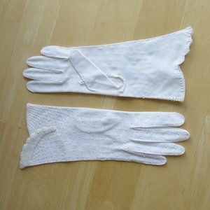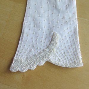 Beautiful Jasly brand, made in Hong Kong, faux-pearl beaded white double-woven cotton gloves.