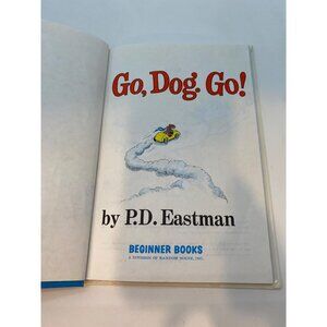 Vintage Dr. Seuss Go, Dog Go! Hardcover Children's Book by P.D Eastman. Books all show wear due to age. Buyer acknowledges that these books are in pre-loved condition and may contain some minor creasing, peeling, staining, scuffs, or other wear. Made in USA.