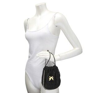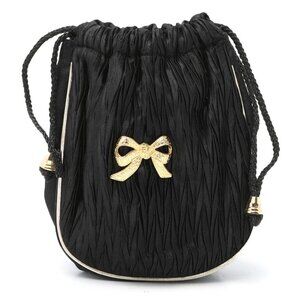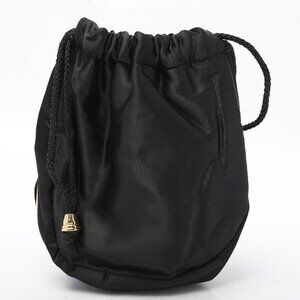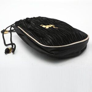 Vintage Drawstring Gathered Satin Bag Black Gold Evening Trinket Jewelry