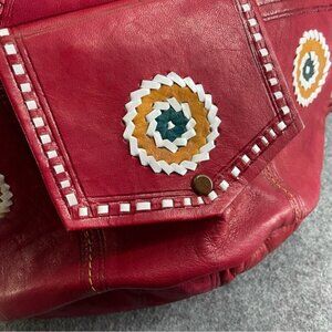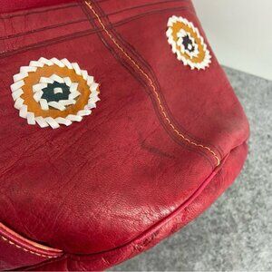 Vintage Drawstring Red Leather Women's Bucket Shoulder Bag