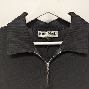Vintage dress from the 80s, collar and zipper front detail. Knee length. Black elastain fabric.