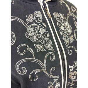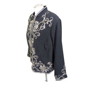 Vintage Dressbarn Oriental Style Jacket Womens 2X Black Floral Lined Full Zip