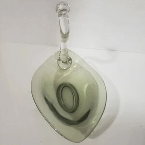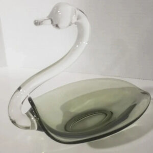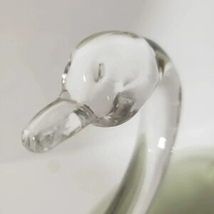 Vintage Duncan Miller Green and clear hand-blown art glass swan candy dish/trinket dish.