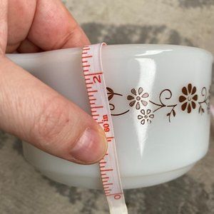 Vintage (1950s) Dynaware Pyr O Rey milk glass white and brown floral pattern mini casserole dish. Pyr O Rey was created in Monterrey, Mexico in the 1940s as a competitor when Pyrex was also being made in Mexico. Dish measures 2.5 inches tall and 6 inches from handle to handle. Excellent vintage condition. Cat friendly, nonsmoking home.