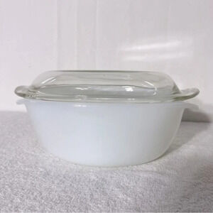 Vintage Dynaware Pyr O Rey Round Casserole With Lid Brown Floral Milk Glass