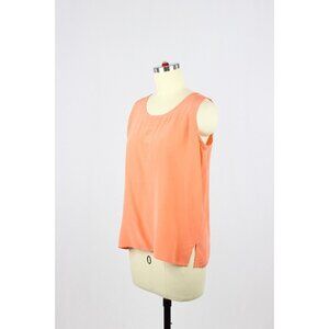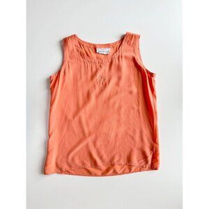 Vintage EATON Orange 100% Silk Crepe Embroidered Scoop Neck Tank Top, Size S