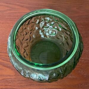 Vintage E.O. Brody Company Green Crinkle Glass Flower Vase or Bowl
