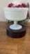 • Glossy white milk glass with elegant pedestal base