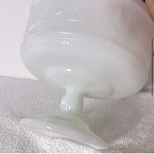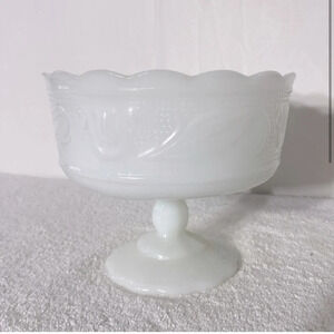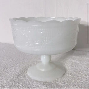 Vintage E.O. Brody Milk Glass Floral Compote Footed Scallop Edge Goblet Dish
