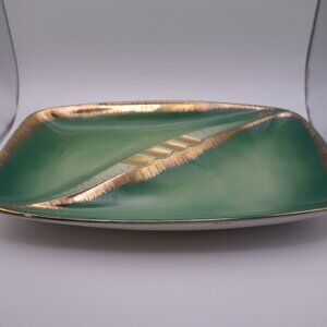 Vintage ESD Japan OT22502 Green with Gold Trim Rectangular Ceramic Ash Tray