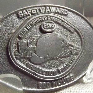 Oil Industry Safety Award belt buckle given to employees working for ESSO.